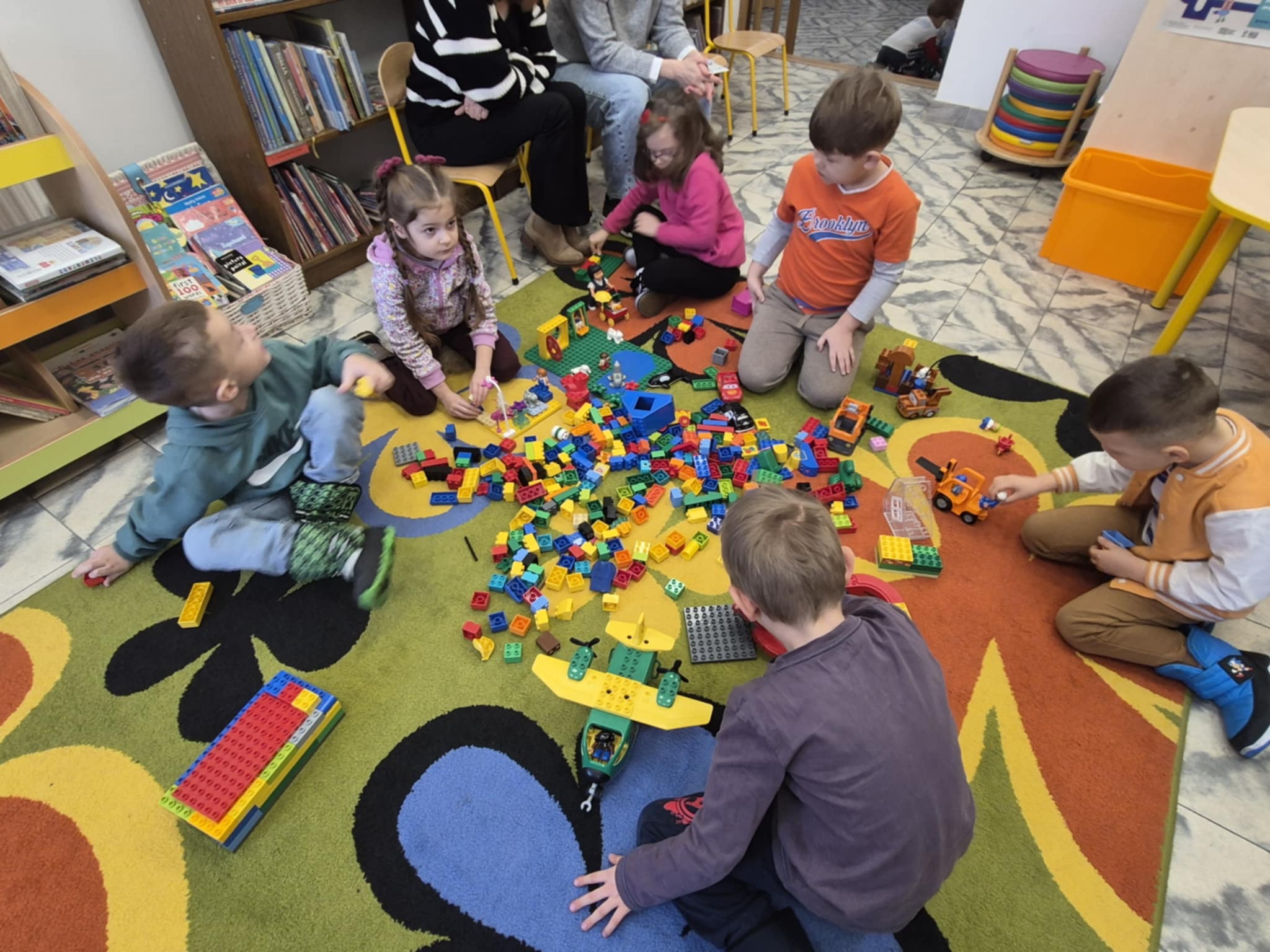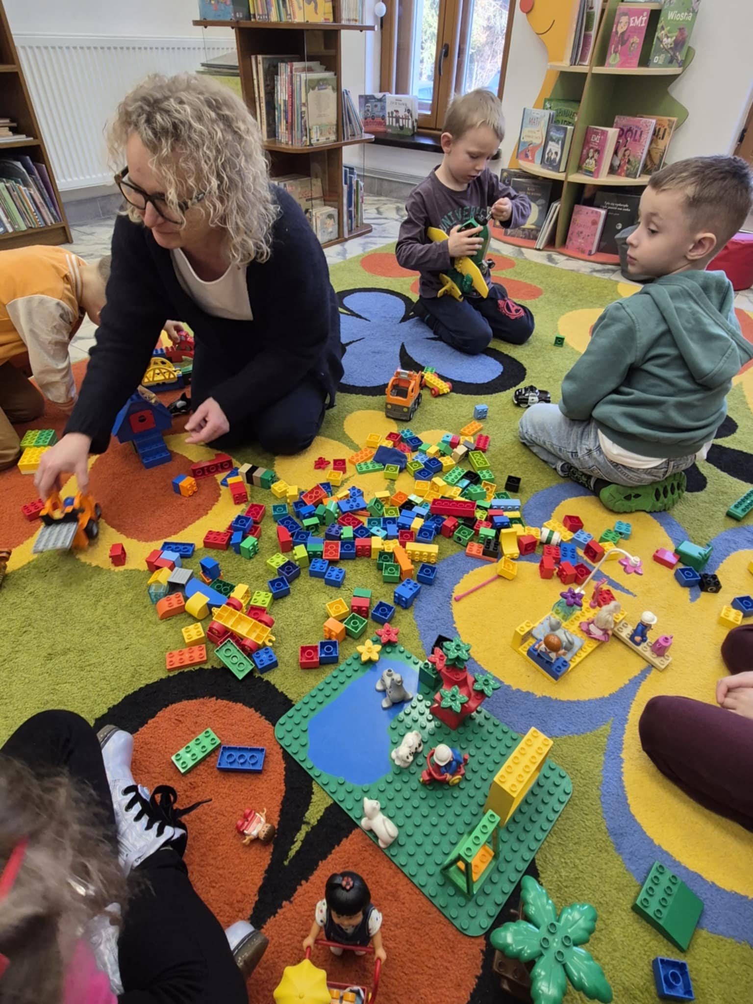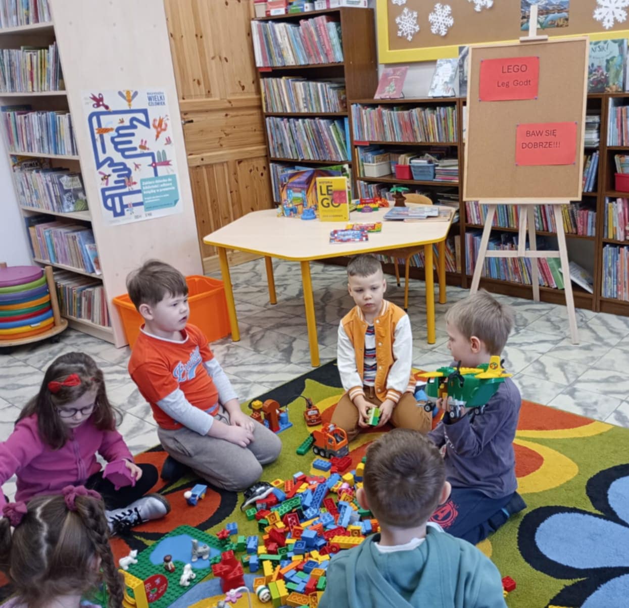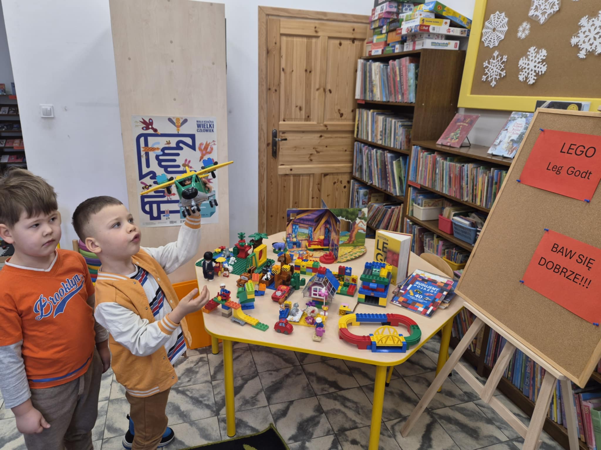 A ponieważ nie ma ograniczeń co do zabawy klockami Lego, dzisiaj w bibliotece swoją wyobraźnię uruchomiły dzieci i dorośli 🙂 Doskonałym początkiem pobudzającym kreatywność był popbook związany z historią Kubusia Puchatka. Nie ma nic piękniejszego niż historie wymyślone i opowiedziane przez dzieci. Dzisiaj właśnie książka oraz klocki dały taką możliwość przedszkolakom z „Niepublicznego Przedszkola Słoneczko” w Wierzchosławicach. Zobaczcie sami, jak piękne historie zilustrowali klockami Lego nasi goście.