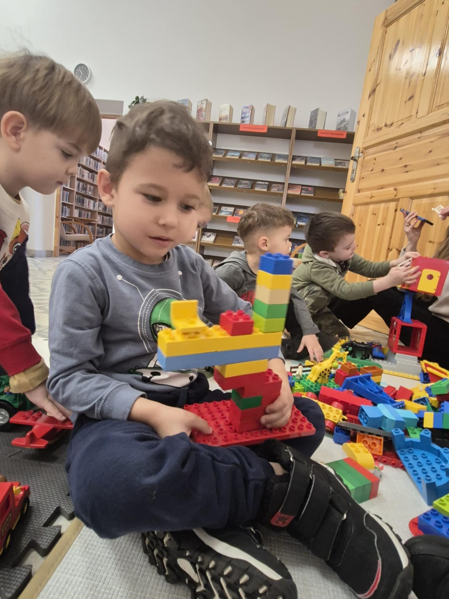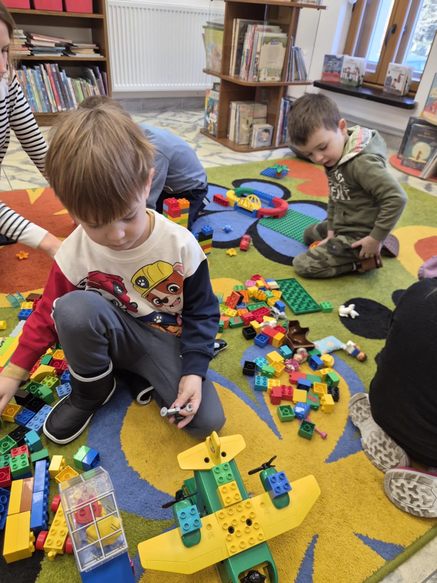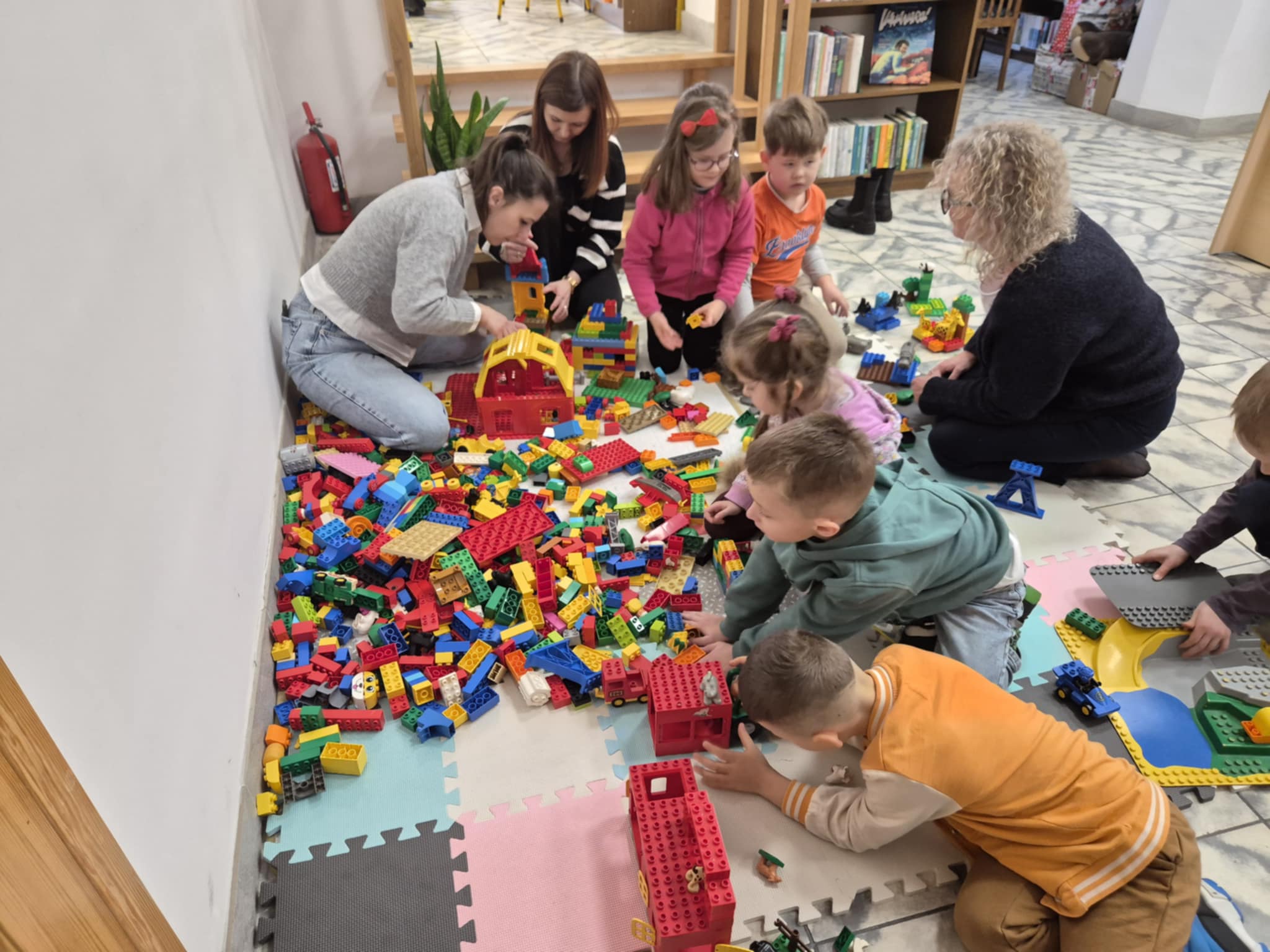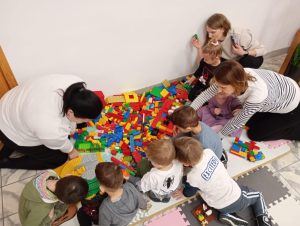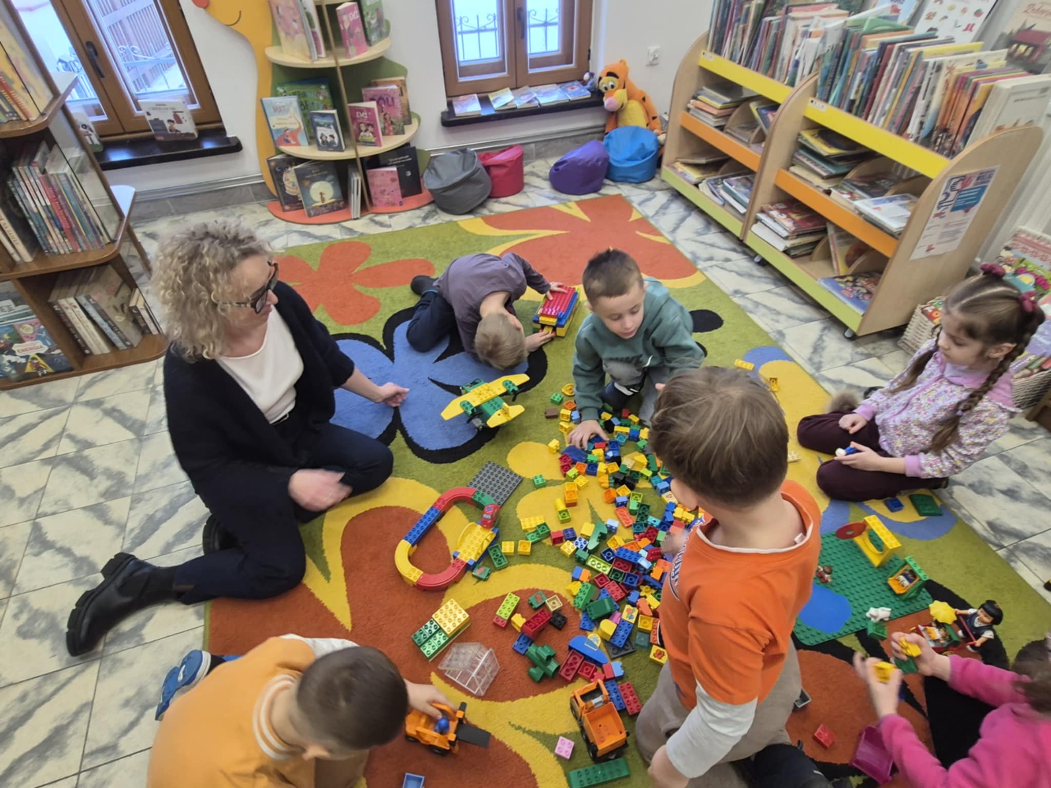 A ponieważ nie ma ograniczeń co do zabawy klockami Lego, dzisiaj w bibliotece swoją wyobraźnię uruchomiły dzieci i dorośli 🙂 Doskonałym początkiem pobudzającym kreatywność był popbook związany z historią Kubusia Puchatka. Nie ma nic piękniejszego niż historie wymyślone i opowiedziane przez dzieci. Dzisiaj właśnie książka oraz klocki dały taką możliwość przedszkolakom z „Niepublicznego Przedszkola Słoneczko” w Wierzchosławicach. Zobaczcie sami, jak piękne historie zilustrowali klockami Lego nasi goście.