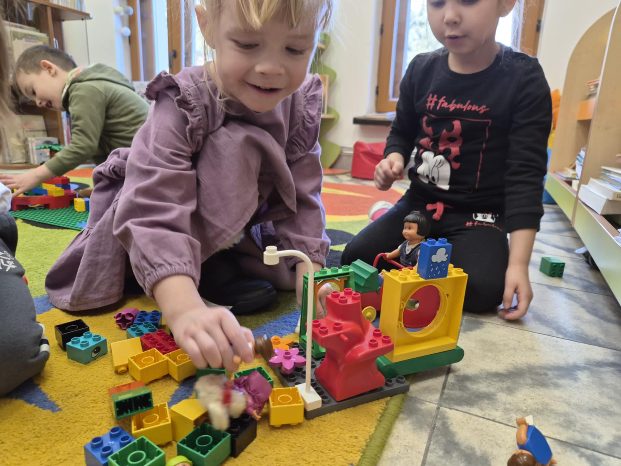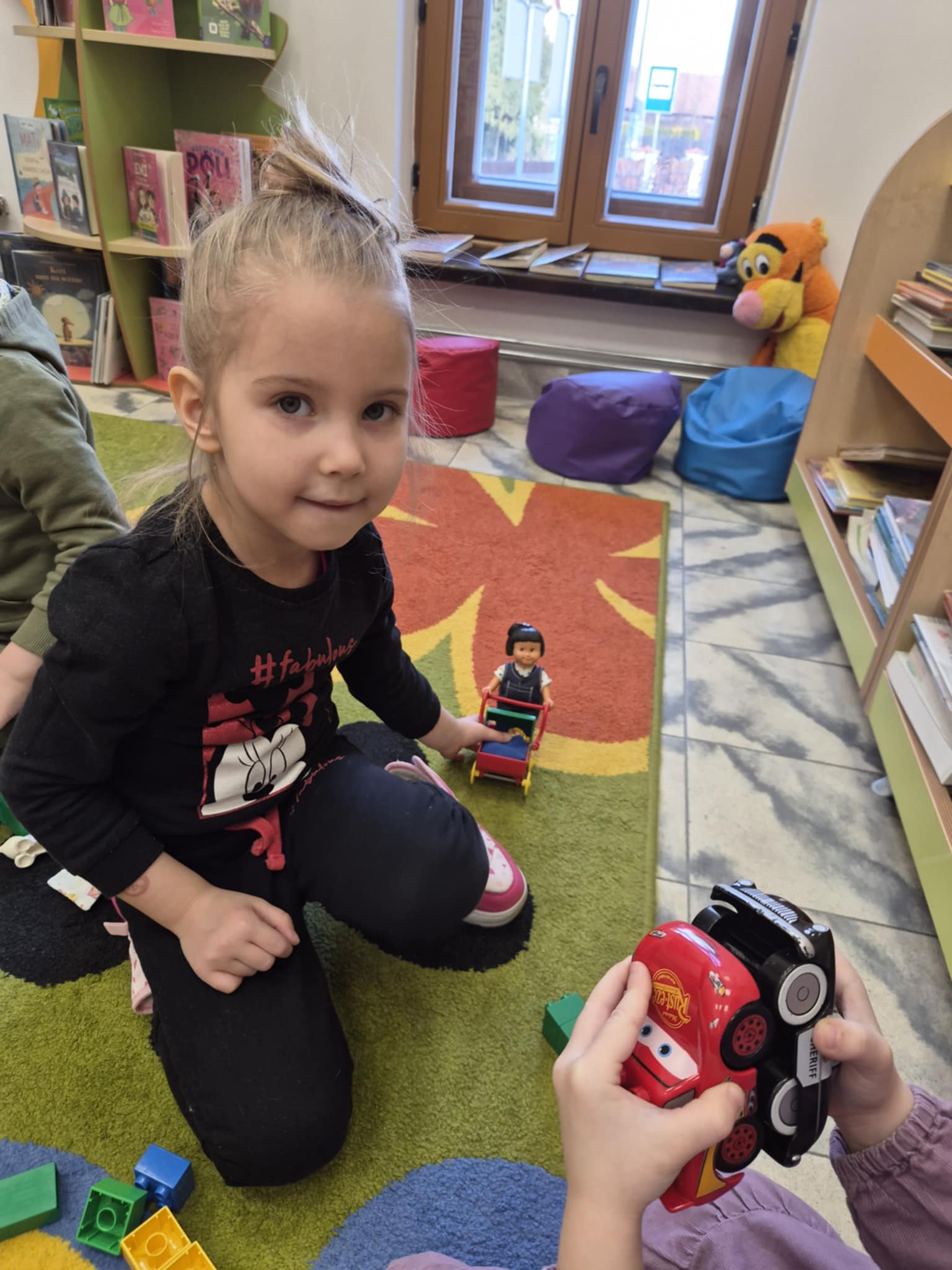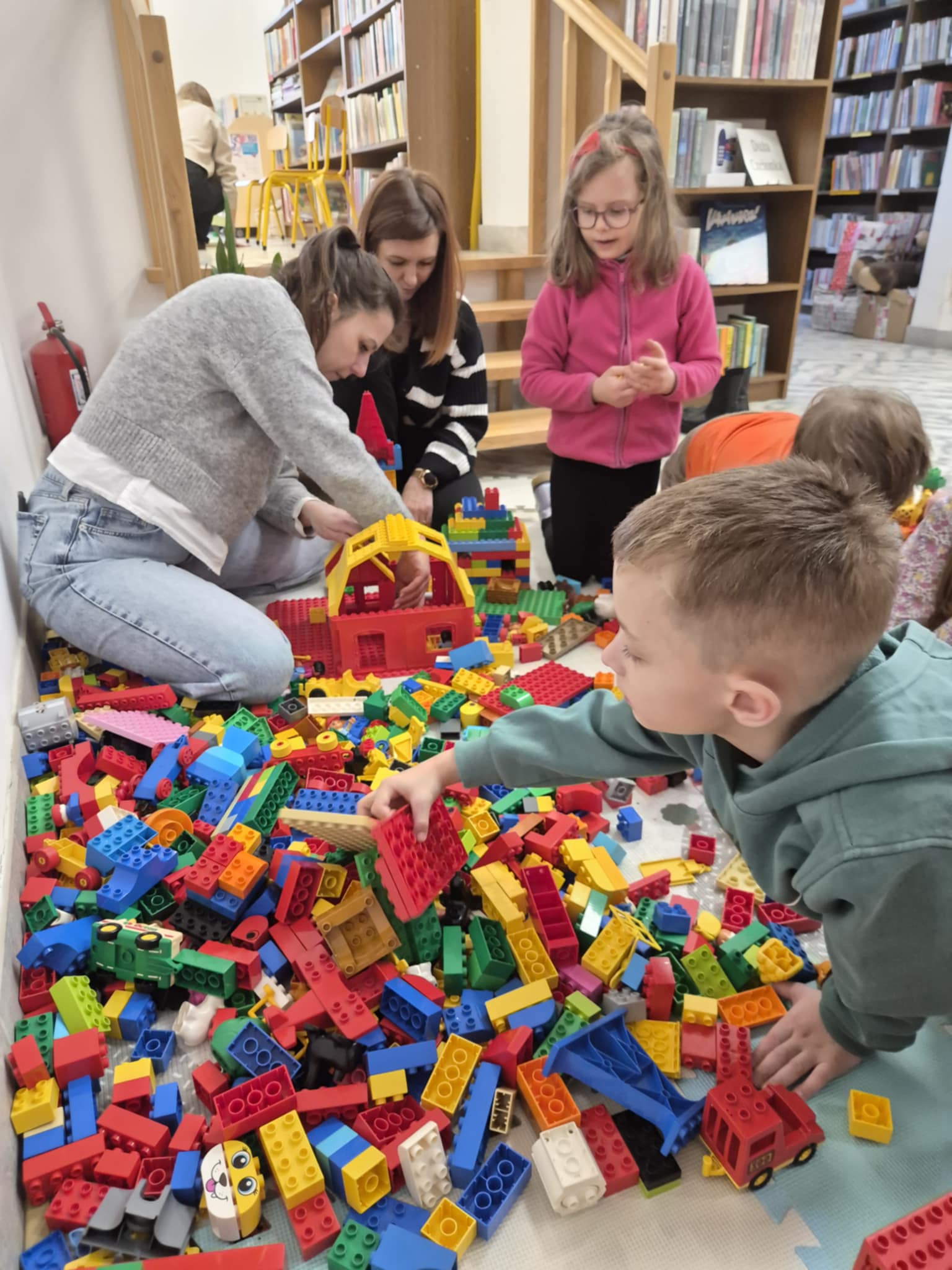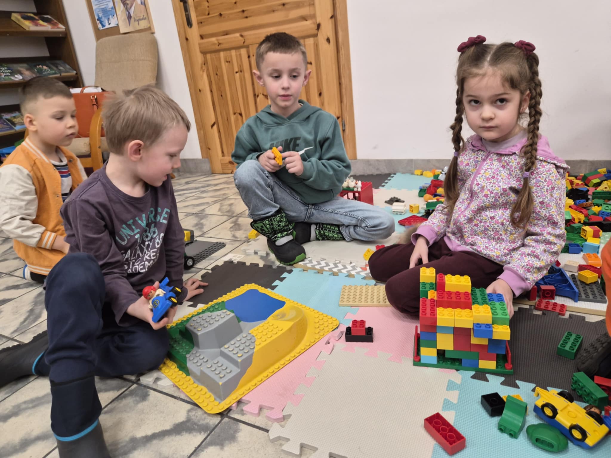 A ponieważ nie ma ograniczeń co do zabawy klockami Lego, dzisiaj w bibliotece swoją wyobraźnię uruchomiły dzieci i dorośli 🙂 Doskonałym początkiem pobudzającym kreatywność był popbook związany z historią Kubusia Puchatka. Nie ma nic piękniejszego niż historie wymyślone i opowiedziane przez dzieci. Dzisiaj właśnie książka oraz klocki dały taką możliwość przedszkolakom z „Niepublicznego Przedszkola Słoneczko” w Wierzchosławicach. Zobaczcie sami, jak piękne historie zilustrowali klockami Lego nasi goście.