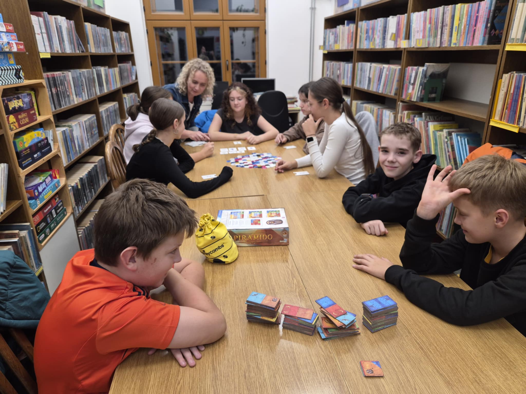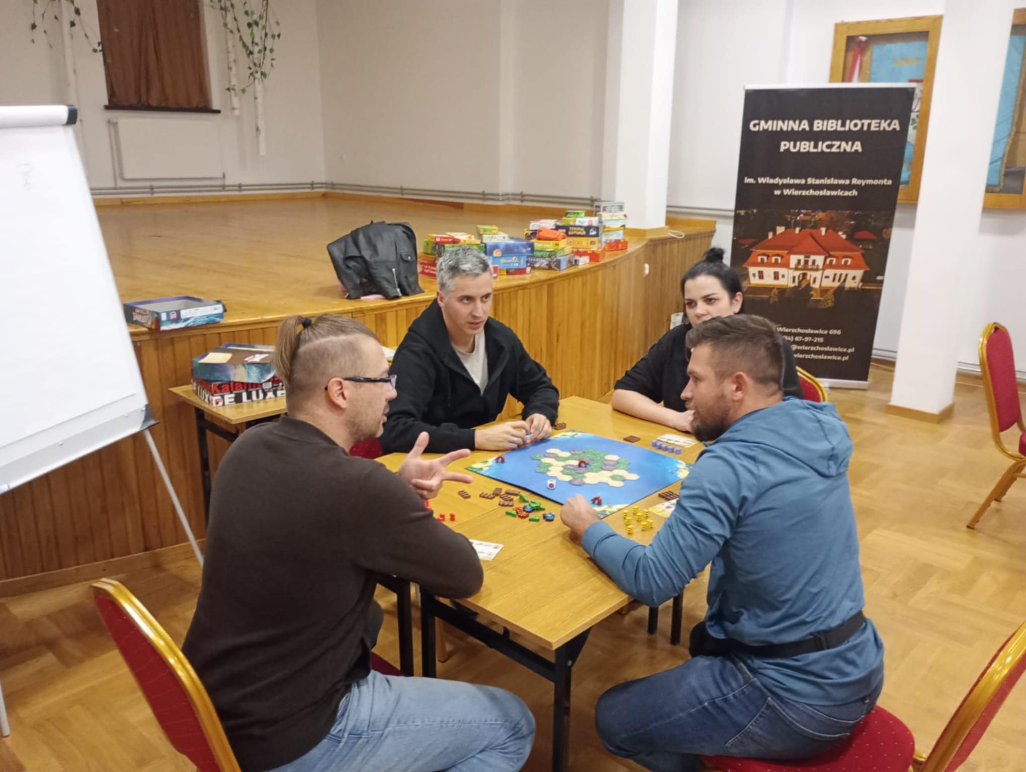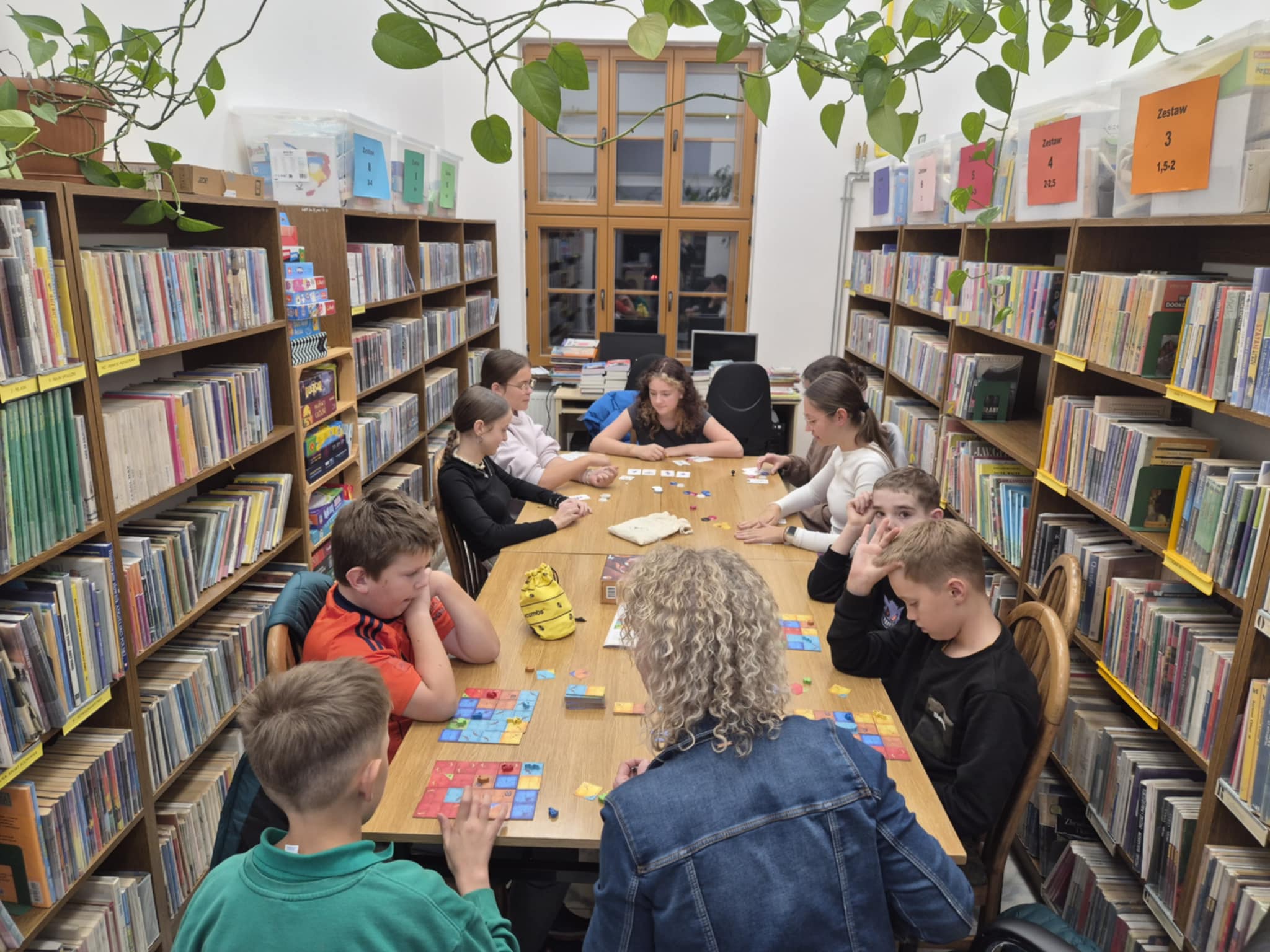 Drugą część akcji stanowiły rozgrywki gier planszowych. Najpierw swoich sił próbowali młodsi-młodzież od klasy IV SP, a następnie do rywalizacji przystąpili dorośli. Stoczono wiele „pojedynków”, które uczestnicy zakończyli już w… sobotę 😉 Nikt więc już nie powinien mieć wątpliwości, że to była naprawdę długa „Noc w bibliotece ” 🙂