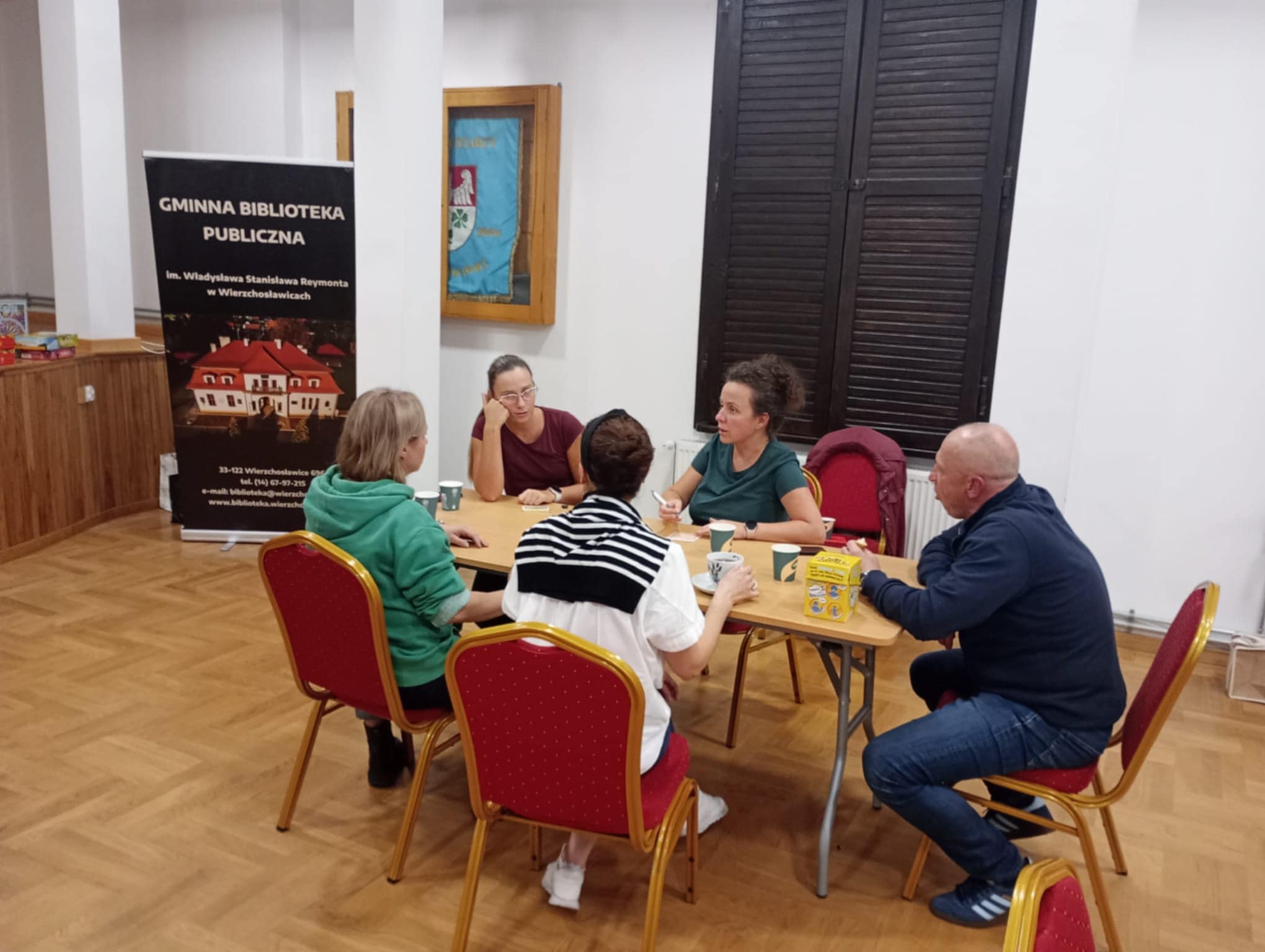 Wieczorna frekwencja była znakomita, wręcz nas zaskoczyła! 🙂 Nikomu jednak nie zabrakło słodkości przygotowanych przez Koło Gospodyń Wiejskich „Wierzchosławianki” oraz popcornu uprażonego w specjalnie do tego wypożyczonej maszynie. Dziękujemy bardzo Panu Sołtysowi Wierzchosławic za wsparcie w tej kwestii 🙂