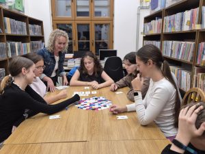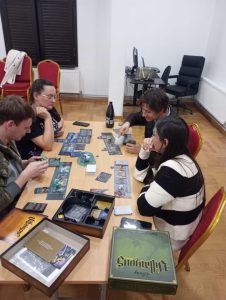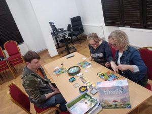 Drugą część akcji stanowiły rozgrywki gier planszowych. Najpierw swoich sił próbowali młodsi-młodzież od klasy IV SP, a następnie tak łatwo w swoich wysiłkach nie poddawali się dorośli. Stoczono wiele „pojedynków”, które uczestnicy zakończyli już w… sobotę 😉 Nikt więc już nie powinien mieć wątpliwości, że to była naprawdę długa „Noc w bibliotece ” 🙂