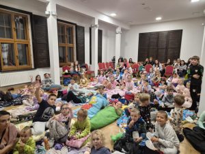Ostatni piątek był najdłuższą „Nocą w bibliotece” do tej pory! A wszystko dlatego, że nasza akcja, choć nocna, rozpoczęła się już w godzinach przedpołudniowych, kiedy to odwiedziła nas młodzież ze Specjalnego Ośrodka Szkolno-Wychowawczego w Wierzchosławicach-Dwudniakach. Początek weekendu upłynął nam pod znakiem kina i gier planszowych. 🙂 Młodzież z Ośrodka, a potem wieczorem dzieci z terenu Gminy Wierzchosławice, w piżamach, obejrzały film przygotowany specjalnie na Noc Bibliotek – „Biuro detektywistyczne Lassego i Mai. Rabuś z pociągu”, który powstał na podstawie książki autorstwa Martina Widmarka, autora popularnej serii książek dla dzieci.