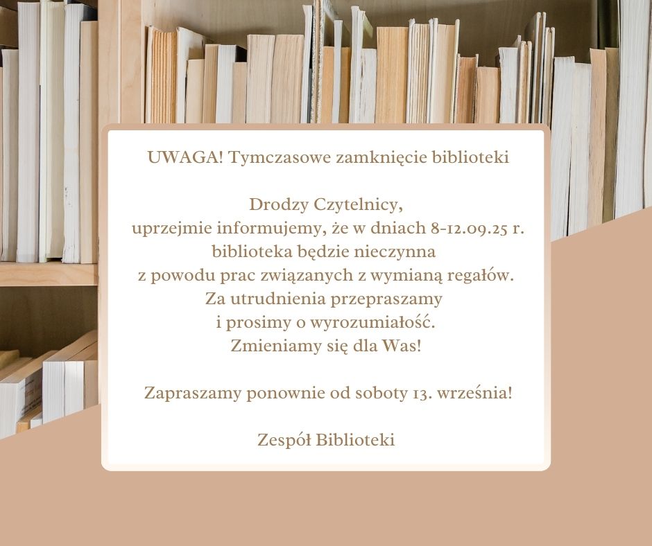 Tymczasowe zamknięcie biblioteki! opublikowany wAktualności w 3 września 2025 przez Redaktor Udostępnij Tweet