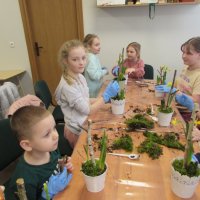 Dzieci wykonują wiosenne kompozycje na warsztatach florystycznych. Dzieci wykonują wiosenne kompozycje na warsztatach florystycznych. Dzieci wykonują wiosenne kompozycje na warsztatach florystycznych. Dzieci wykonują wiosenne kompozycje na warsztatach florystycznych. Dzieci wykonują wiosenne kompozycje na warsztatach florystycznych. Wiosenna kompozycja. Dzieci wykonują wiosenne kompozycje na warsztatach florystycznych. Dzieci wykonują wiosenne kompozycje na warsztatach florystycznych. Grupa dzieci prezentuje swoje prace wykonane podczas warsztatów - Las w szkle. Wielkanocna kompozycja wykonana przez dorosłych na warsztatach.