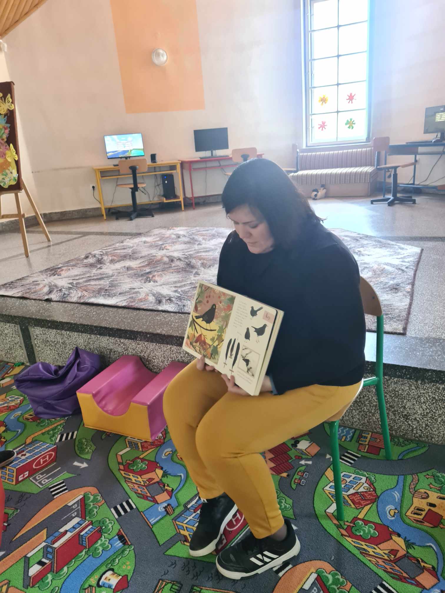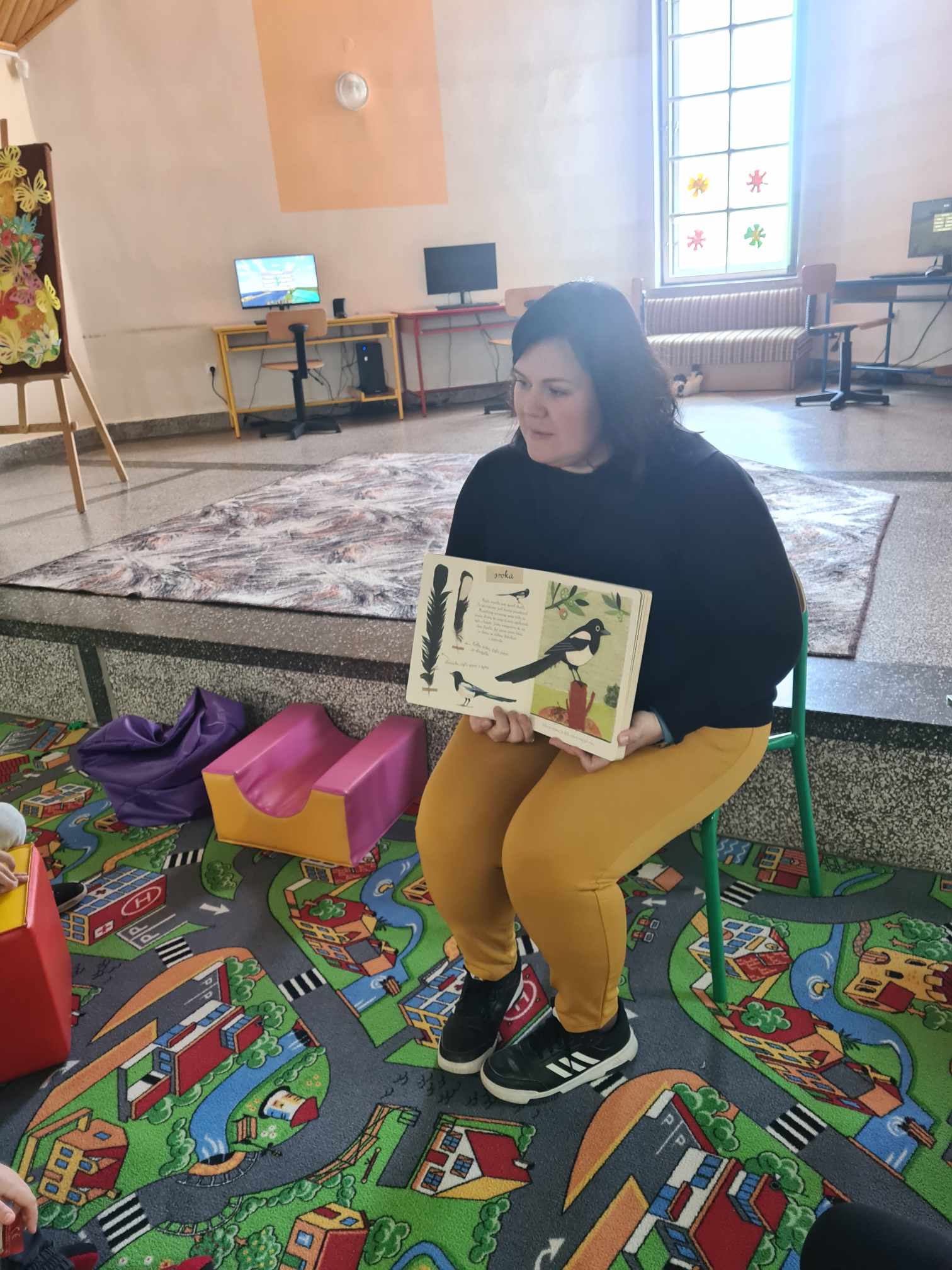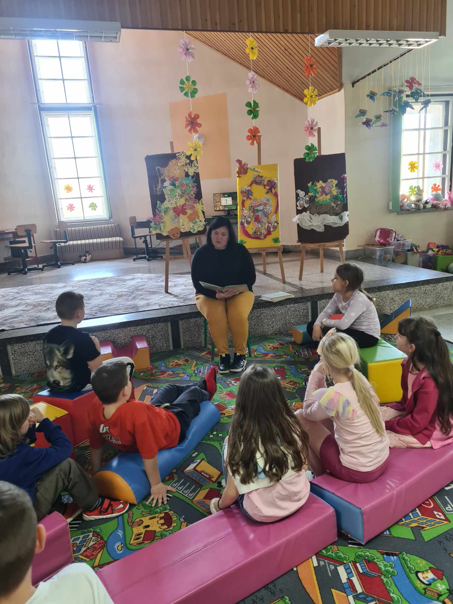 Pierwsze dni kwietnia upłynęły w filii w Mikołajowicach na wiosennym czytaniu wspólnie z dziećmi z Placówki Wsparcia Dziennego w Mikołajowicach. Oczekiwanie na wiosnę wszystkim dało się we znaki, zwłaszcza w ostatnie chłodne dni, więc postanowiliśmy przywołać ją z pomocą książek. Podczas pierwszego spotkania czytaliśmy historię bociana, który zgubił swoje okulary, a na kolejnym wiersz Juliana Tuwima „Ptasie radio” – w końcu to ptaki swoim śpiewem najpiękniej przywołują wiosnę. Porozmawialiśmy o ptakach i ich zwyczajach, ale też mogliśmy je zobaczyć i przeczytać o nich ciekawostki dzięki „Małemu atlasowi ptaków” Ewy i Pawła Pawlaków. Dzieci wykonały też piękne prace plastyczne – Panią wiosnę oraz kolorowanki wielkanocne, dlatego wspomnieliśmy również o zwyczajach związanych z Wielkanocą.