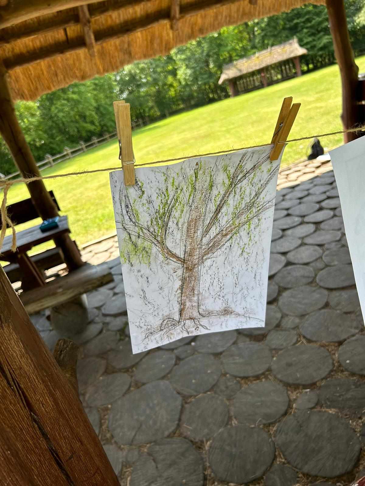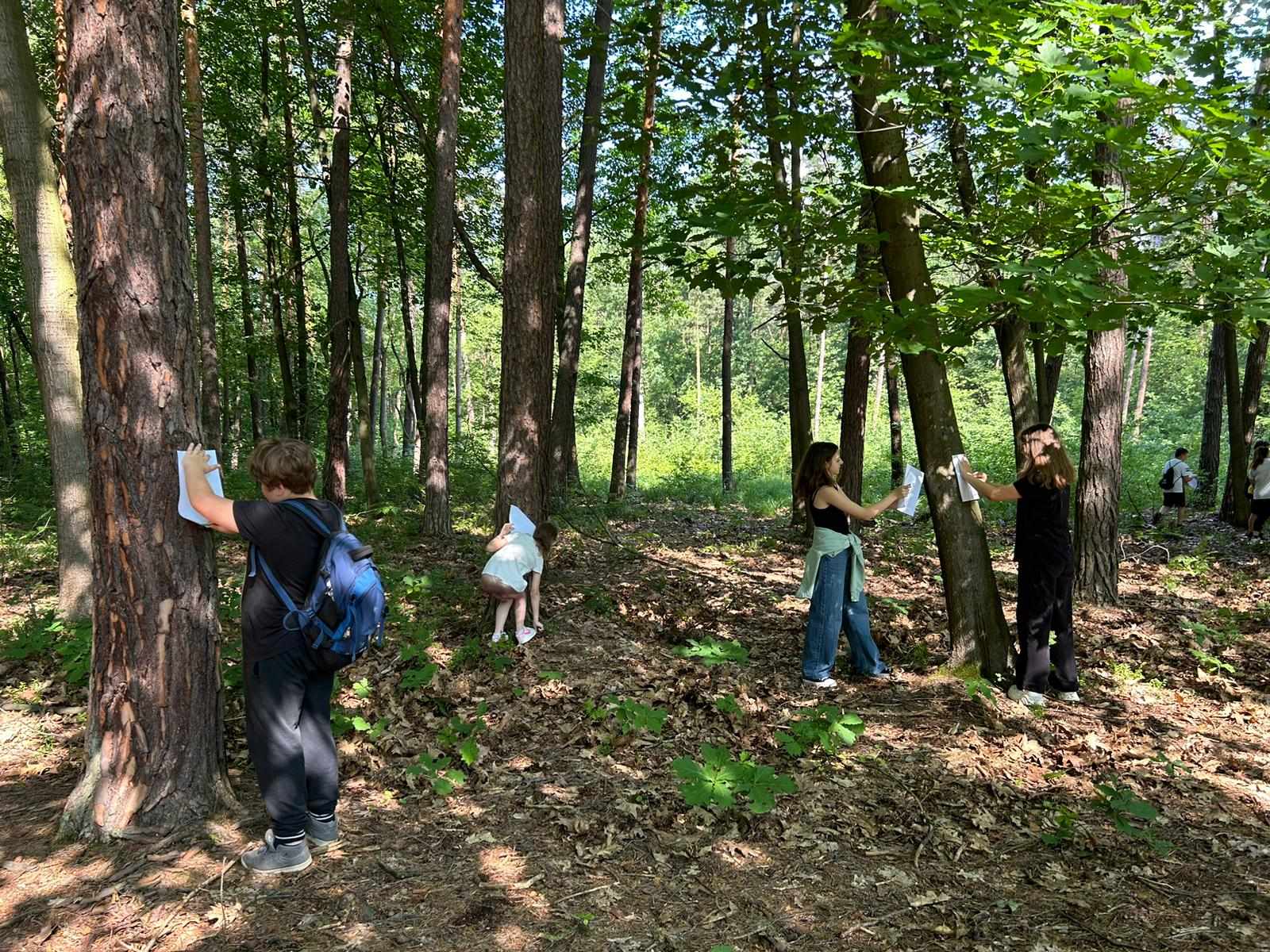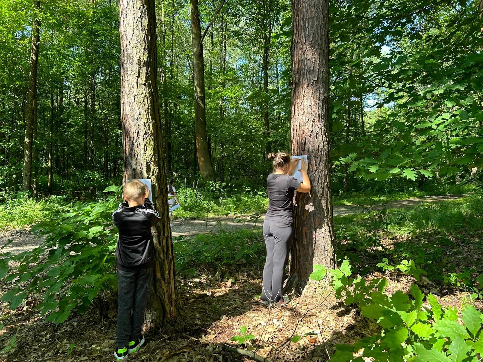 Po zapoznaniu się z tablicami informacyjnymi, z których można było się dowiedzieć wielu ciekawych rzeczy o bogactwie roślin i zwierząt zamieszkujących teren leśny, wyruszyliśmy na spacer. Nasłuchiwaliśmy dźwięków lasu i jego mieszkańców. W oparciu o praktyczne ćwiczenia z przyrody zawarte w książce „Chodź na dwór!” uczestnicy wycieczki wykonali drzewne odbitki, z których później powstała wyjątkowa wystawa. Poznali także i nauczyli się odczytywać historię drzew z ich „dowodów osobistych”. Dociekliwi wcielili się w rolę przyrodniczych detektywów, obserwując runo leśne przeprowadzili inspekcję insektów, które je zamieszkują. Dla aktywnych uczestników tor przeszkód nie stanowił żadnego problemu. A w ramach odpoczynku – zainteresowani mogli zapoznać się z książkami dotyczącymi lasu i jego mieszkańców.