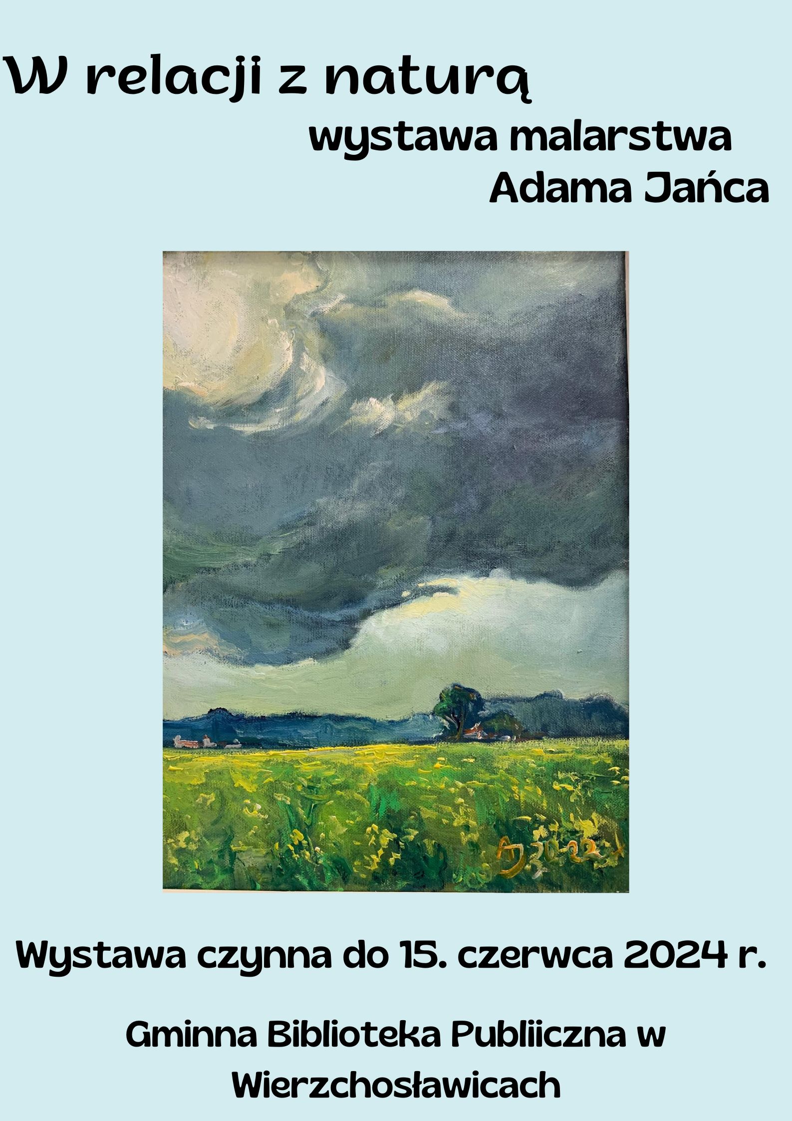 Gminna Biblioteka Publiczna im. Władysława Stanisława Reymonta w Wierzchosławicach zaprasza wszystkich miłośników sztuki do obejrzenia wystawy malarstwa naszego zaprzyjaźnionego artysty pana Adama Jańca zatytułowanej „W relacji z naturą”.