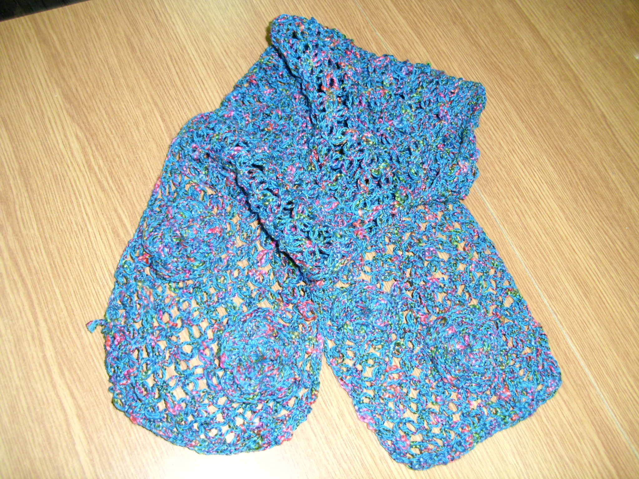 Ażurowy szalik i kominy, to dodatki zaprezentowane w czasie styczniowego spotkania Klubu Robótek Ręcznych w bibliotece. Pierwszy komin w pięknym bordowym kolorze z wzorem warkocza, drugi jasny z delikatną beżową nitką oraz melanżowy błękitny szalik z kwiatkami wykonanymi z tej samej włóczki. Wszystkie dodatki wykonane są z miękkiej i przyjemnej w dotyku przędzy, nie tylko, że ochronią przed chłodem ale odmienią zimowy strój.