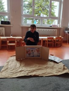Zimowe zabawy biblioteczne opublikowany wAktualności, Lekcje biblioteczne w 19 grudnia 2025 przez Redaktor Udostępnij Tweet Zima, zima, zima, pada, pada śnieg… „Zimowe zabawy” przeczytane w teatrzyku kamishibai gościły na ostatnim spotkaniu z dziećmi w Publicznym Żłobku w Bogumiłowicach. Teraz pozostaje nam tylko czekać na śnieg i prawdziwą zimę
